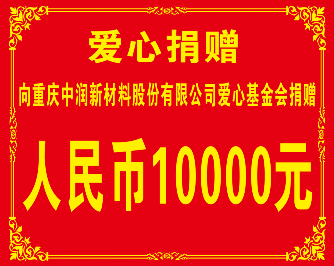 重庆中润新材股份有限公司爱心基金会是为帮助因突发事件而导致严重经济困难的员工而设立。公司秉承“感恩做人,敬业做事”的核心企业文化,为贯彻、落实企业社会责任,体现企业人文关怀,倡导员工互助友爱,董事长丁龙奇先生将此次荣誉所获奖金全数捐赠与重庆中润新材料股份有限公司爱心基金会。