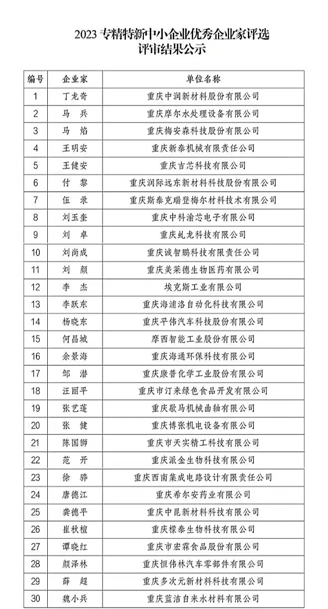 喜讯|董事长丁龙奇获评重庆市2023专精特新中小企业优秀企业家